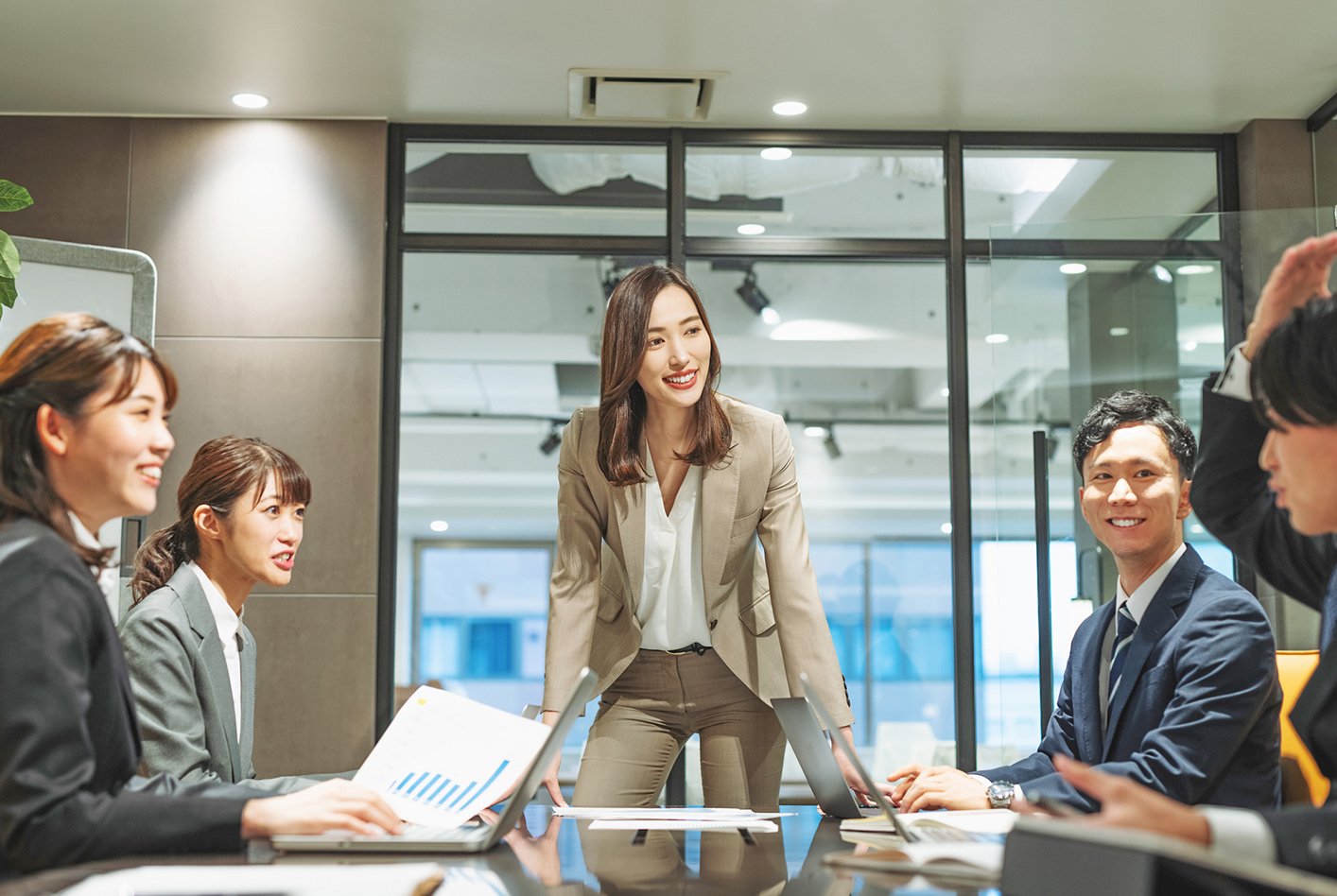 私たちは、女性がいきいきと働ける職場環境づくりや、女性管理職候補の育成、管理職のダイバーシティマネジメント力の向上を通じて、組織全体の成長を後押しします。